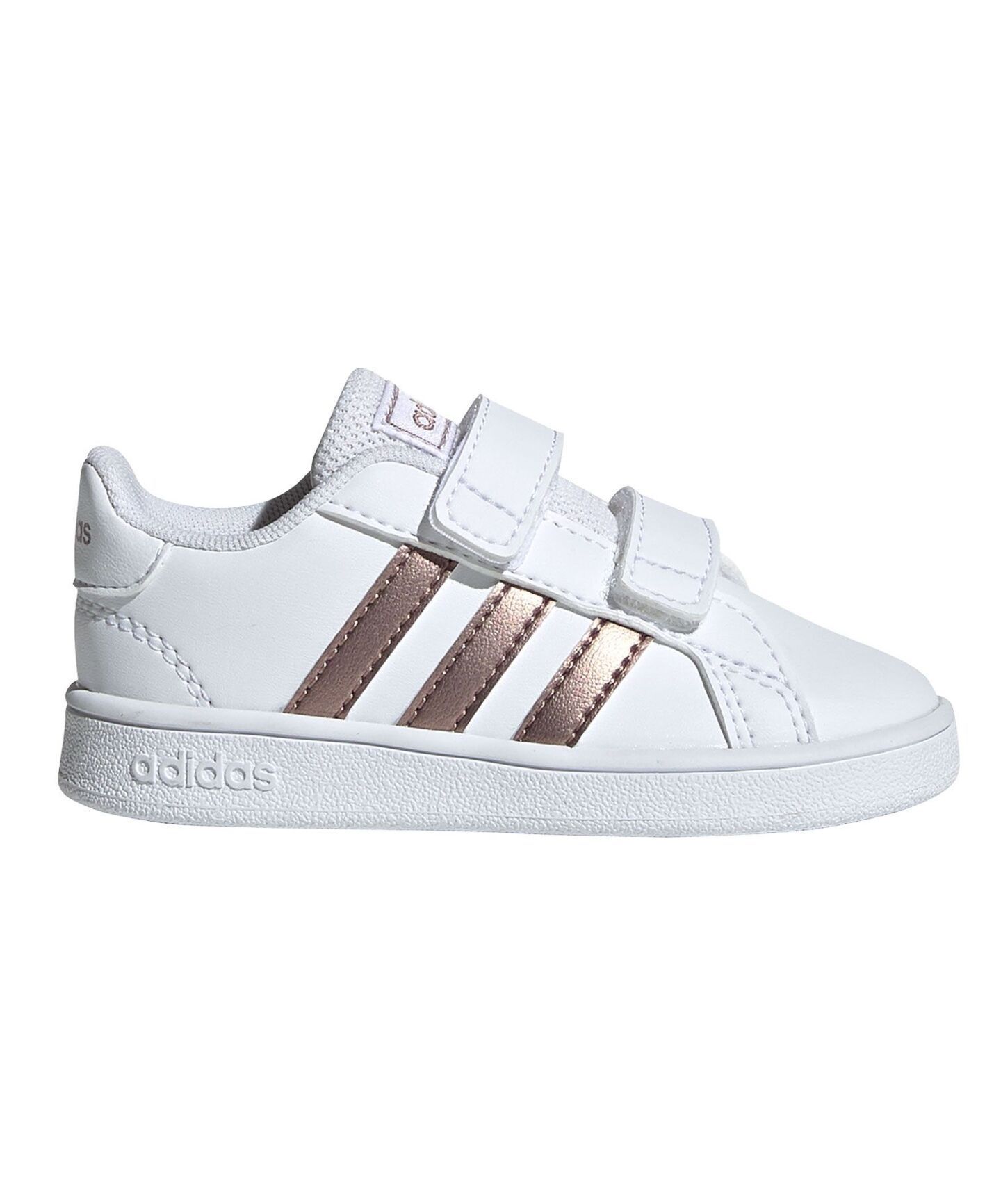 Disse spedbarnsskoene henter inspirasjonen fra klassiske adidas tennis- og basketballsko. De er konstruert for komfort, og har en syntetisk skinnoverdel som holder opp til hverdagens slitasje. Syntetisk 3-stripes i sidene.