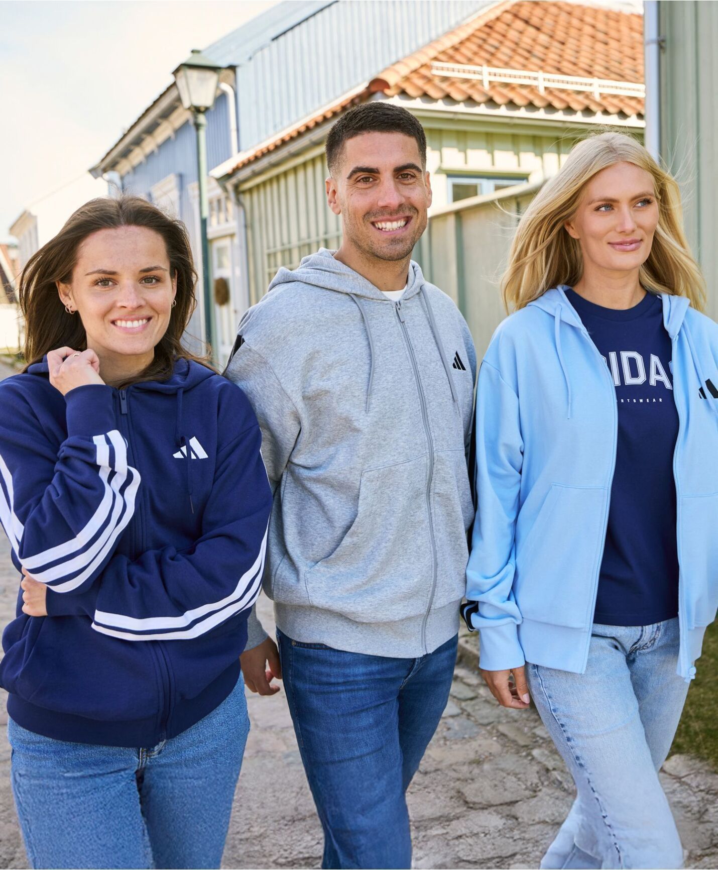 Adidas M 3S hettejakke. Adidas-hettejakke i mykt og komfortabelt collegestoff, med ribbestrikkede mansjetter som holder på varmen. 3-Stripes nedover ermene. 55 % bomull, 36 % polyester (resirkulert), 9 % viskose.