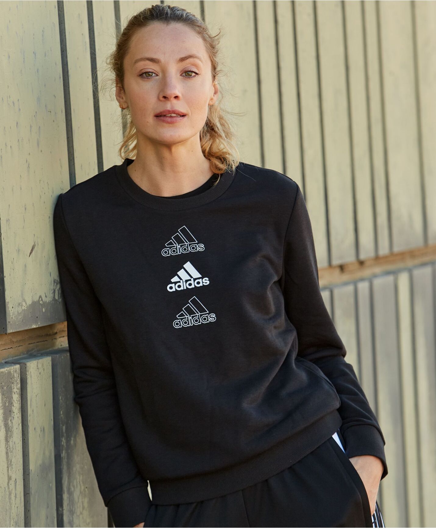 Adidas sweatshirt til dame. Elastisk ribb ved håndledd og i nedkant. 53% bomull, 36% resirkulert polyester, 11% viskose frotté.