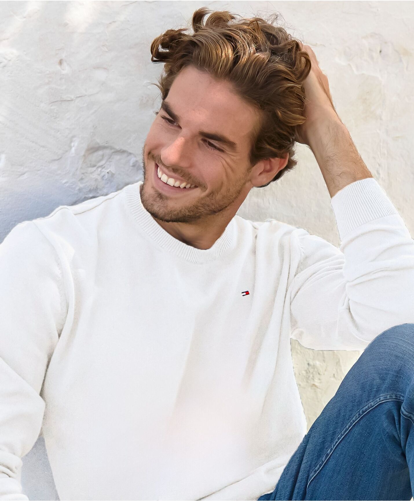 - Rund hals og ribb i nedkant og ved håndledd.