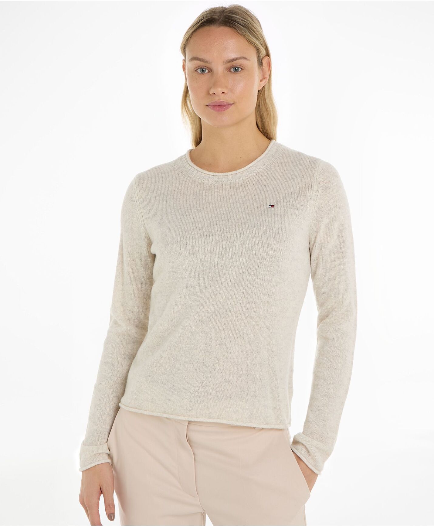 "Nyt tidløs eleganse med Tommy Hilfiger's crew neck genser for kvinner. Laget av 100% ren ull, garanterer den en uovertruffen varme og komfort, perfekt for kjøligere dager. Denne klassiske genseren er subtilt forbedret med det distinkte Tommy Hilfiger-flaggbroderiet på brystet, som legger til et preg av merkevarens kjente luksus. Med sin feminine skjæring passer den sømløst inn i enhver garderobe, og gir en sofistikert finish til ethvert antrekk. Velg Tommy Hilfiger's ullgenser for en blanding av tradisjonell kvalitet og moderne design, og varm deg med stil denne sesongen."