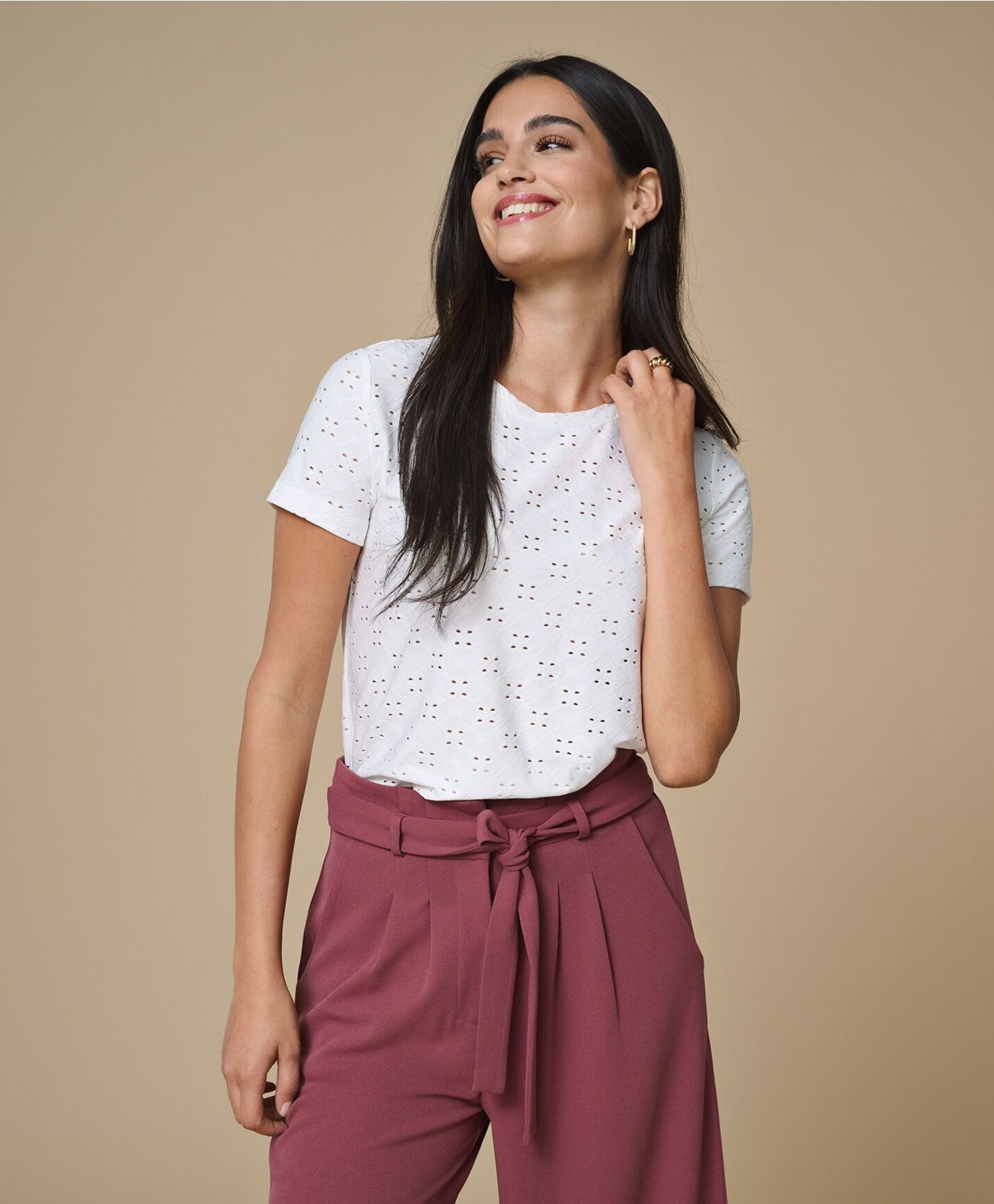 JDY Catinka Tag top. Søt rundhalset t-skjorte i mønstrete materiale. T-skjorte med løs passform, passer perfekt til jeans eller skjørt og sneakers. 92% polyester, 8% elastan.