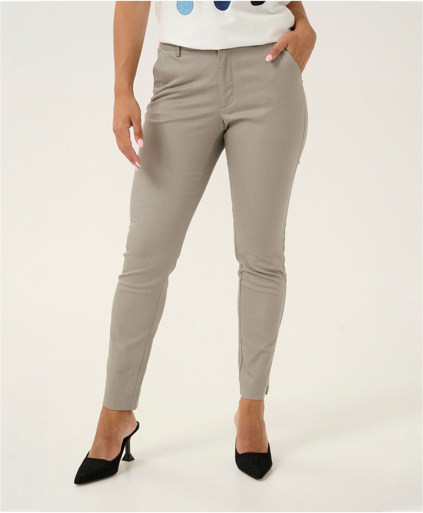 - Smale bein og normal høyde på livet.
