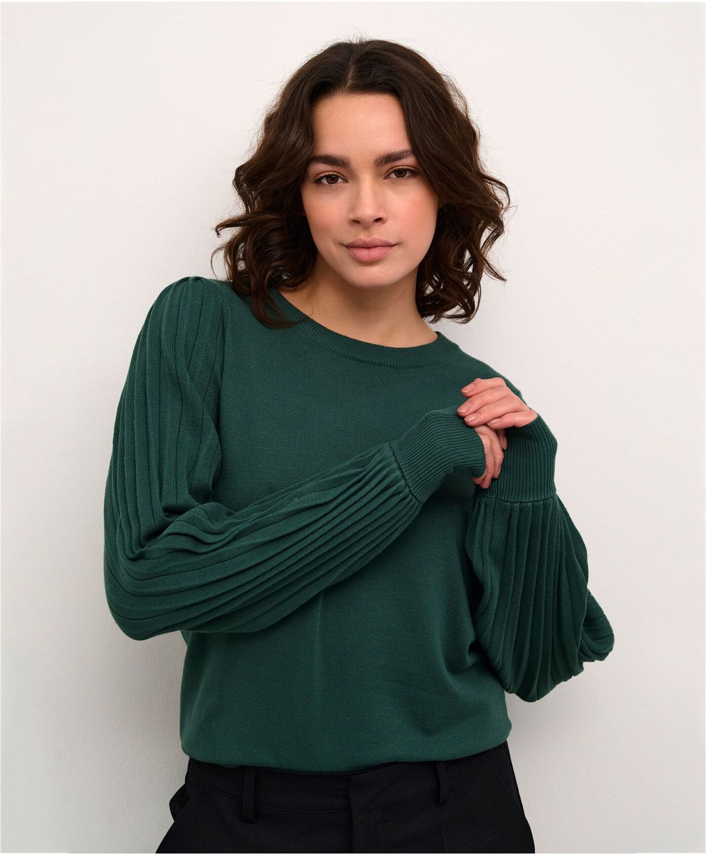 Forny garderoben med KAFFE langermet genser med lekre vide armer. Denne unike genseren gir en moderne med sin ribbede nedkant, halsåpning og ribb ved håndleddene. Laget av en førsteklasses blanding av 80% viskose og 20% nylon, sikrer den maksimal komfort og varighet. Perfekt for de som ønsker en kombinasjon av stil og funksjonalitet. Gjør et stilfullt statement denne sesongen med vår langermede genser.
