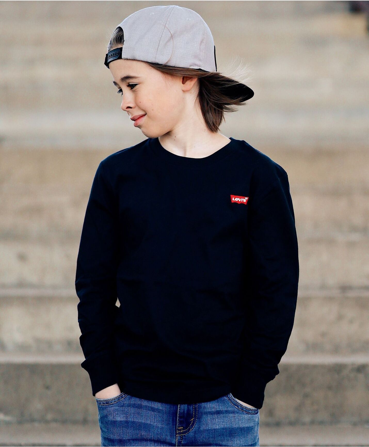 Langermet trøye til gutt og jente med liten Levi's logo i front. 60% bomull, 40% polyester