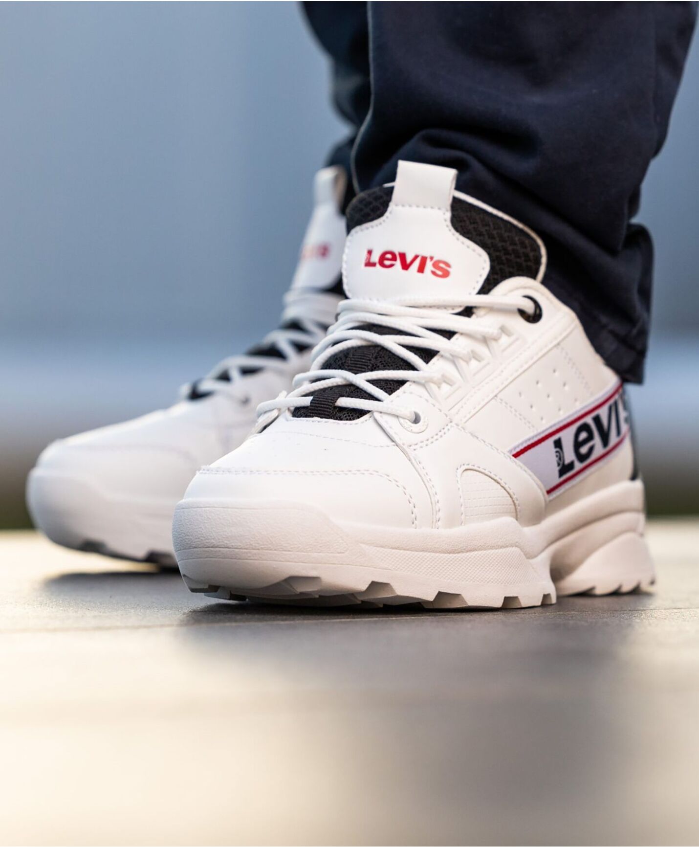 Trendy sneakers fra Levis. Skoen har slitesterkt yttermateriale i imitert-skinn og luftig mesh innvendig. Syntetisk god platå såle.