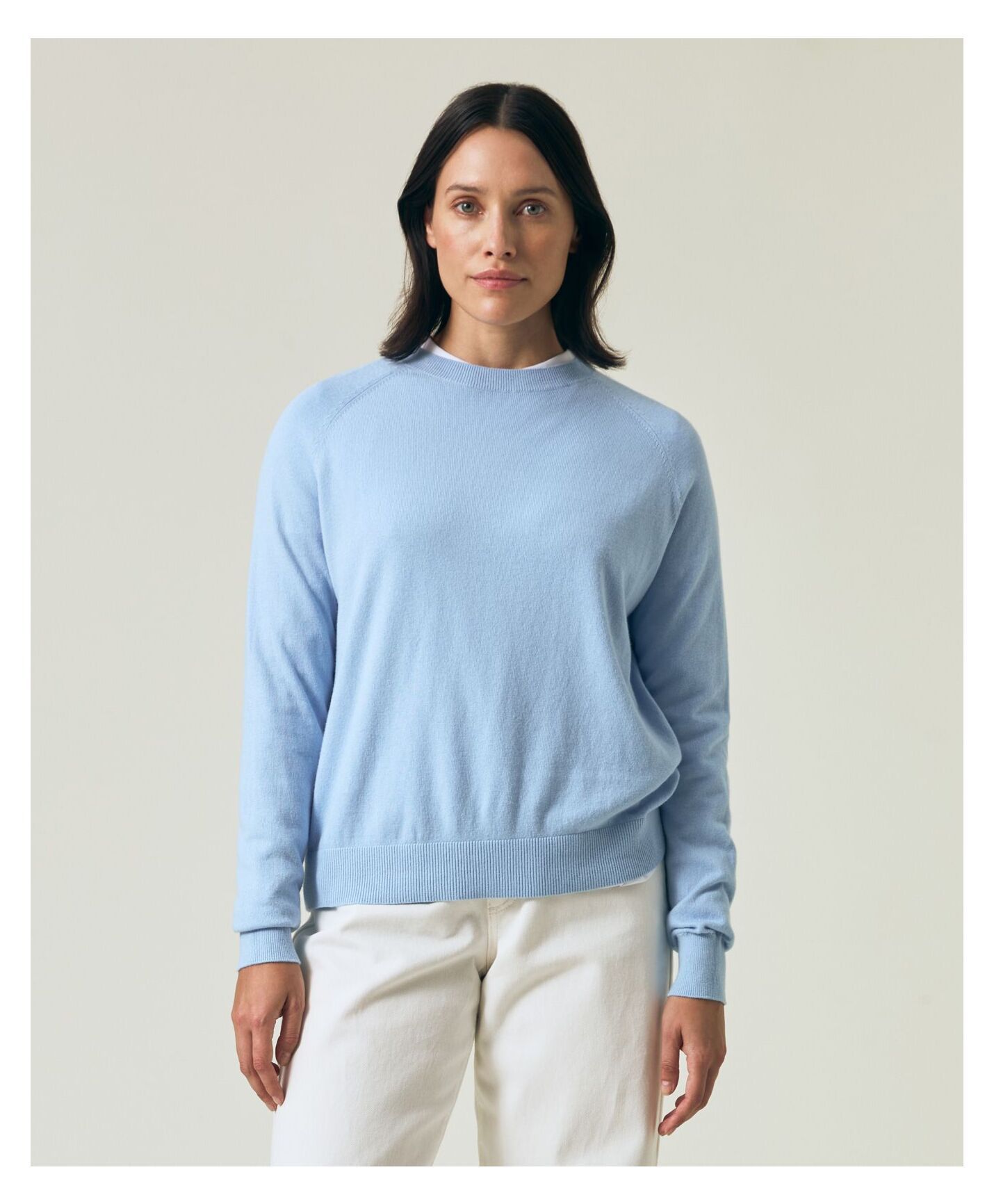 Raglangenseren i kasjmirblanding har komfort og tidløs stil. Lange raglanermer og rund hals, ensfarget strikk på kropp og ermer og ribbestrikkede kanter og halsringning for en raffinert finish. Den fine strikken og den myke håndfølelsen gjør den perfekt for koselige lag på lag. Denne genseren er et allsidig plagg for enhver garderobe. 95% bomull og 5% kasjmir.