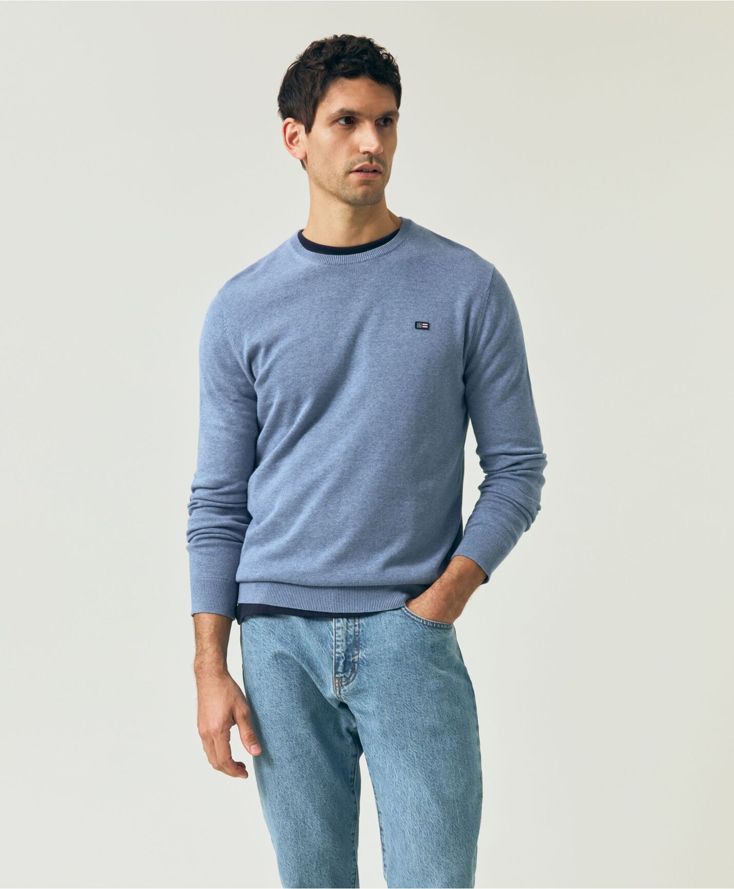 Lexington Cotton Crew Neck Sweater. Rundhalset bomullsgenser i klassisk stil. Laget av glattstrikk i 12 gauge og har rund hals med 1x1-ribb i krage, nederkant og mansjetter. De innsydde ermene og de moteriktige detaljene ved armhullet, skuldersømmen og halsen gir en skreddersydd passform. Utstyrt med Lexington-flaggmerket på brystet og er et raffinert valg for en elegant hverdag. 100 % bomull.