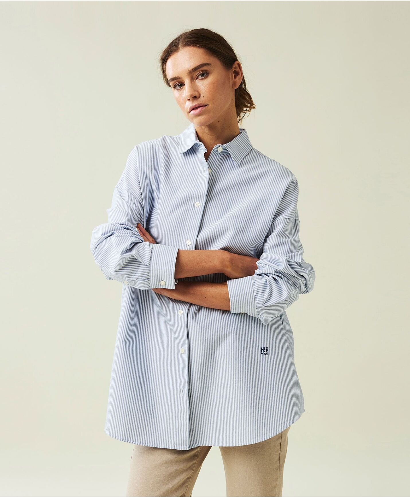 Denne skjorten i Klassisk stripet Oxford-vevd økologisk bomull er stylet med lave skuldre for en casual fit. Denne økologiske bomullsskjorten har frontknapplukking og merkets flaggetikett i siden.