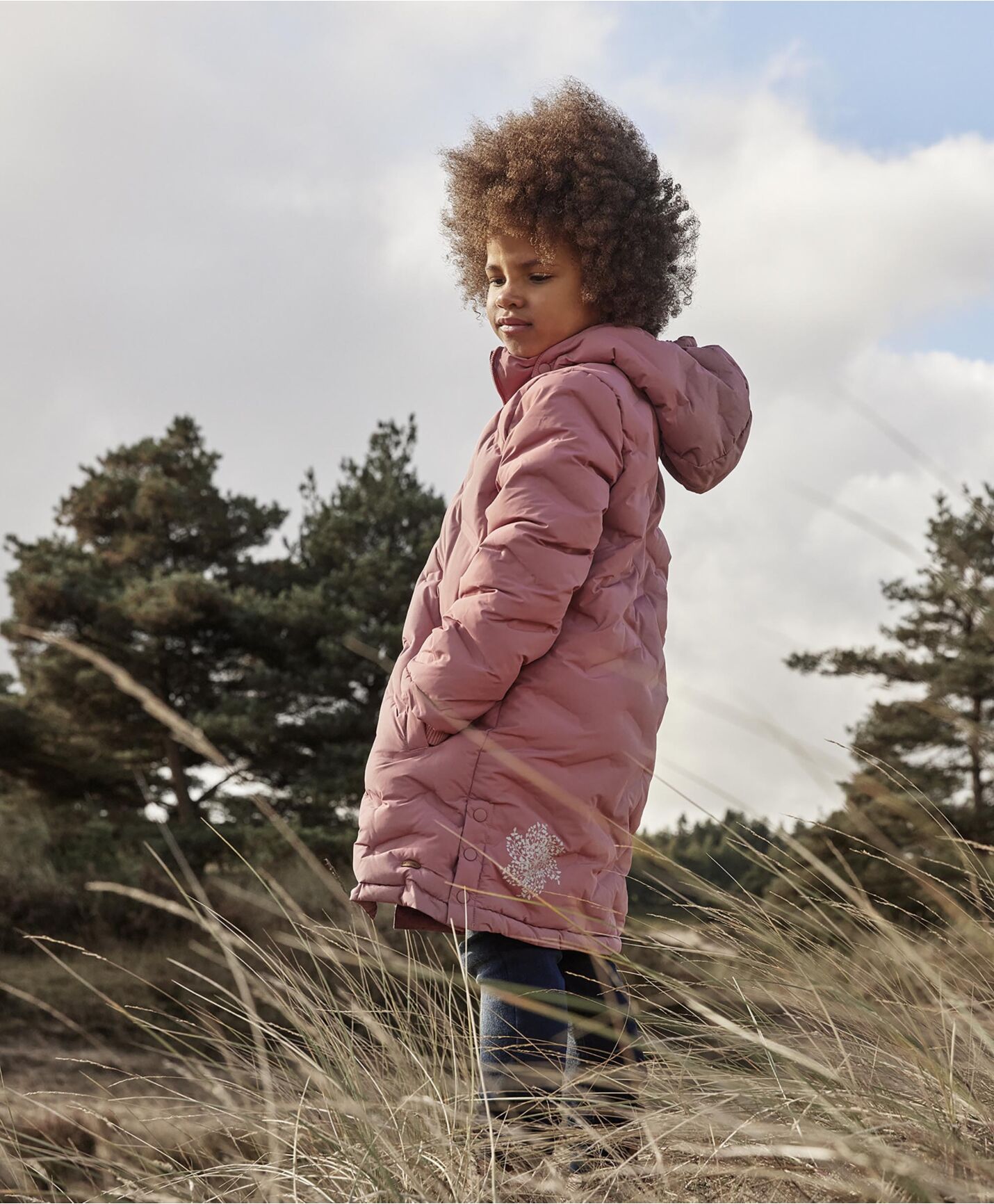 Varm vattert vinterjakke til jente fra MINYMO. Materialet er pustende og vanntett, så barnet ditt kan være ute i regn og snø uten å bli kaldt og vått. Lommer i siden, avtagbar hette, knapper i siden for justering. Vanntett: 8000 mm. Vannsøyle: 6000 og 10000 mm. 100% polyester.
