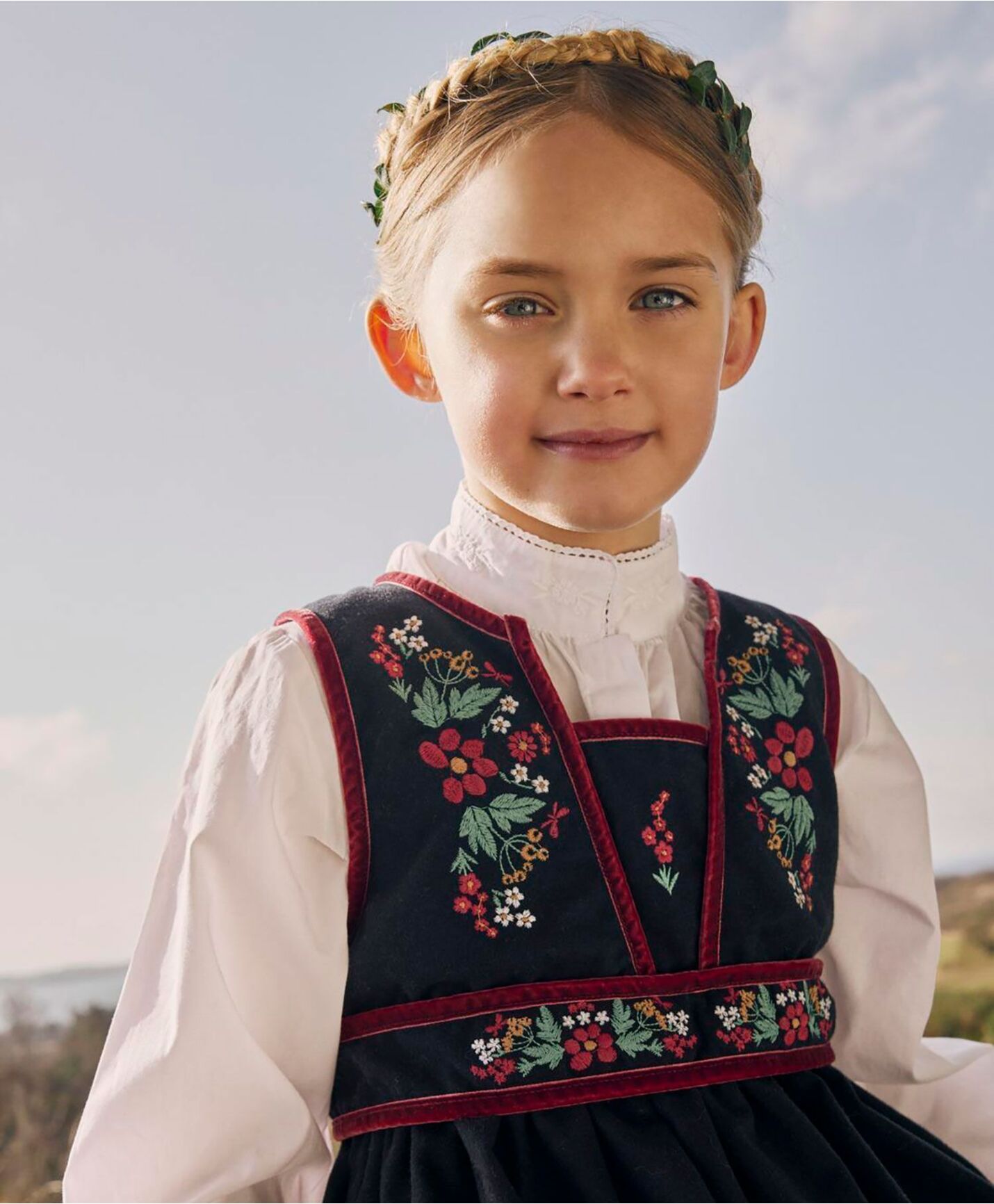 Fin "bunad" skjorte til jente, passer til festdrakten.