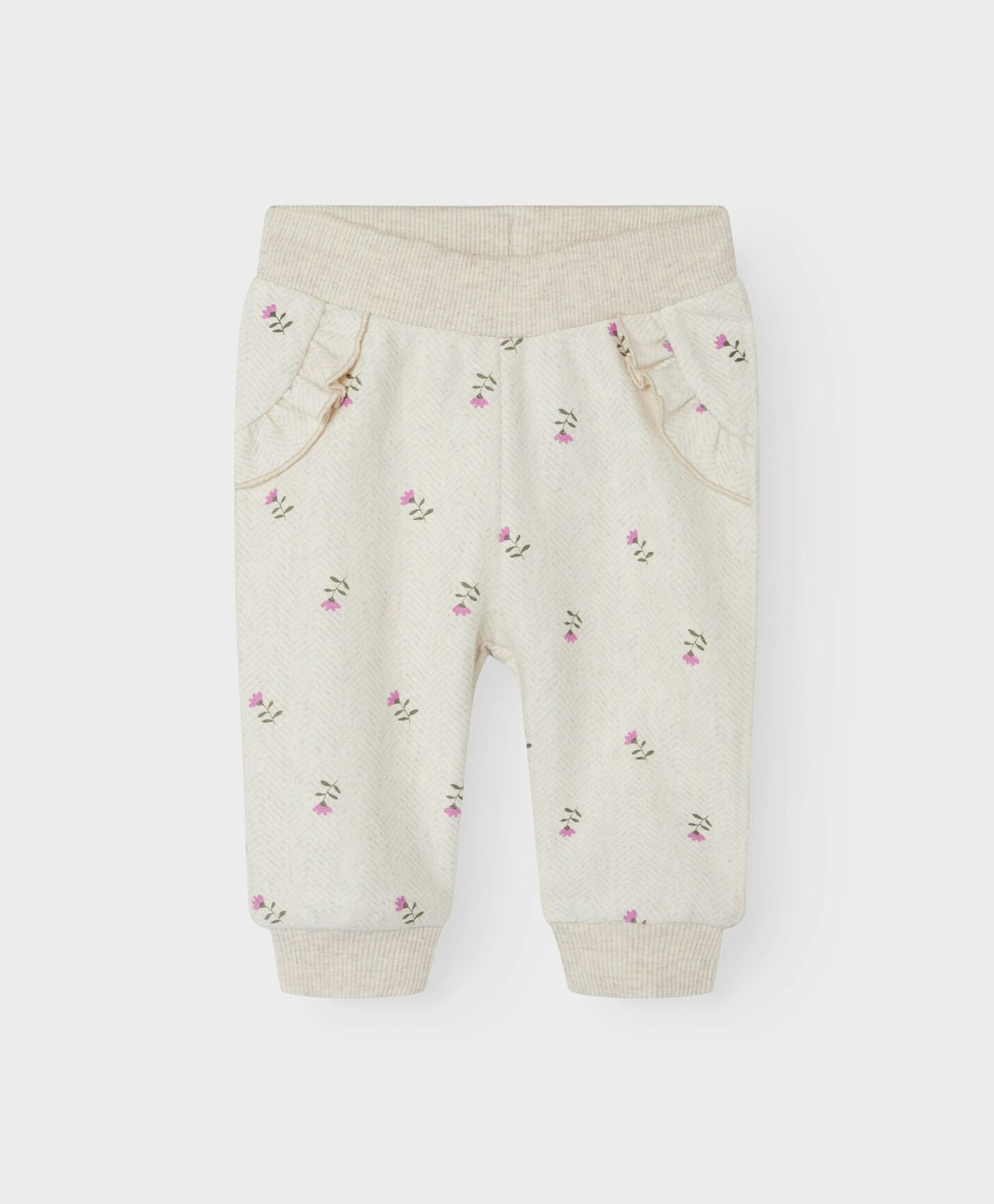 Name it Nulla bukse med nydelig print og søte volang-detaljer på sidene. Elastikk og justering i livet. 86% Cotton - Organic, 12% Polyester - Recycled, 2% Elastane