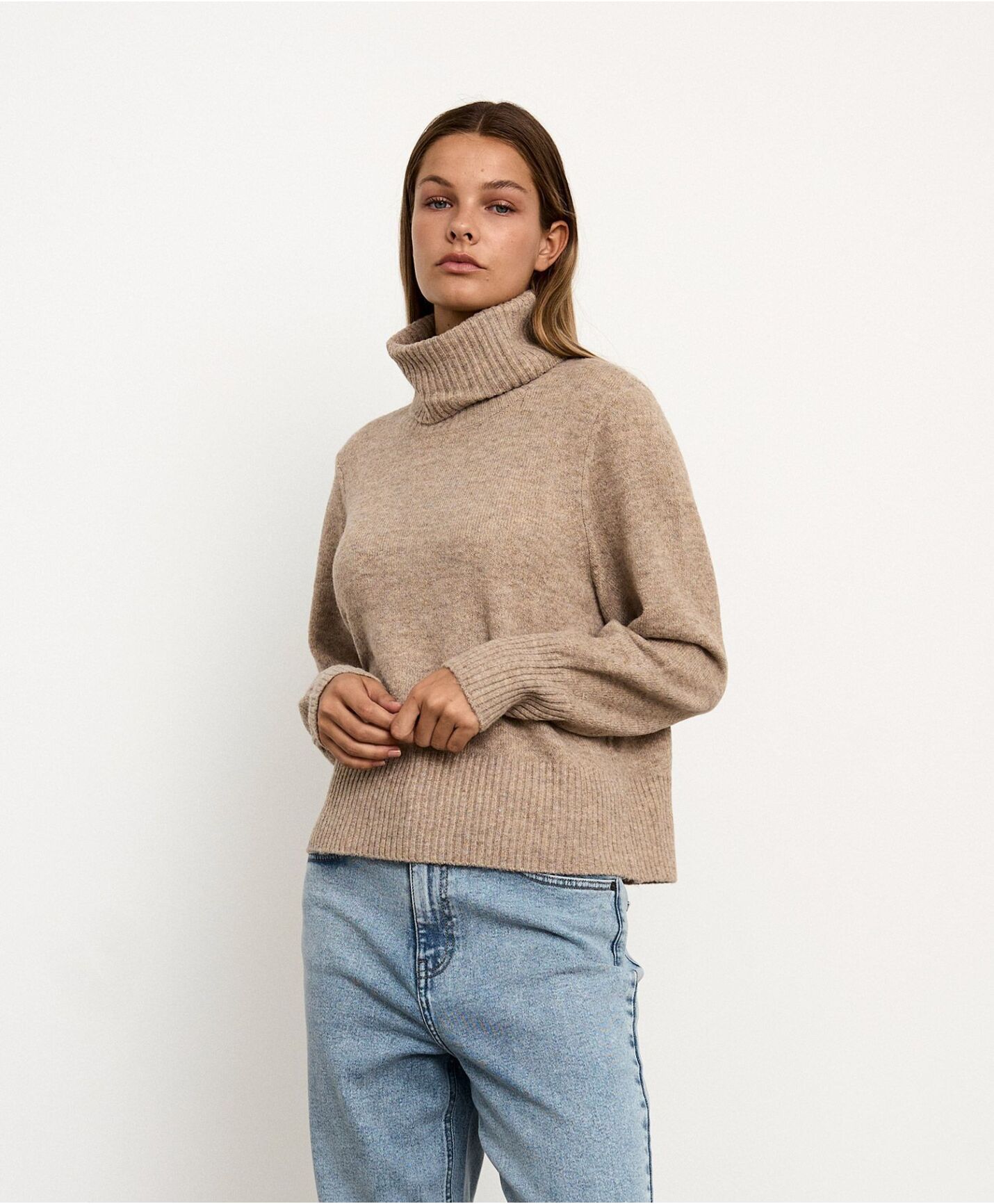 Laget av 65% polyester, 19% akryl, 10% nylon , 3% elastan og 3% ull.