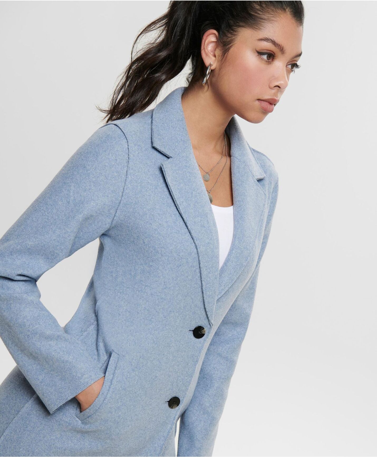 Klassisk kåpe med knappelukking og stikklommer i siden. Håndvask. Legges flatt til tørk. Ufòret. 100 % Polyester