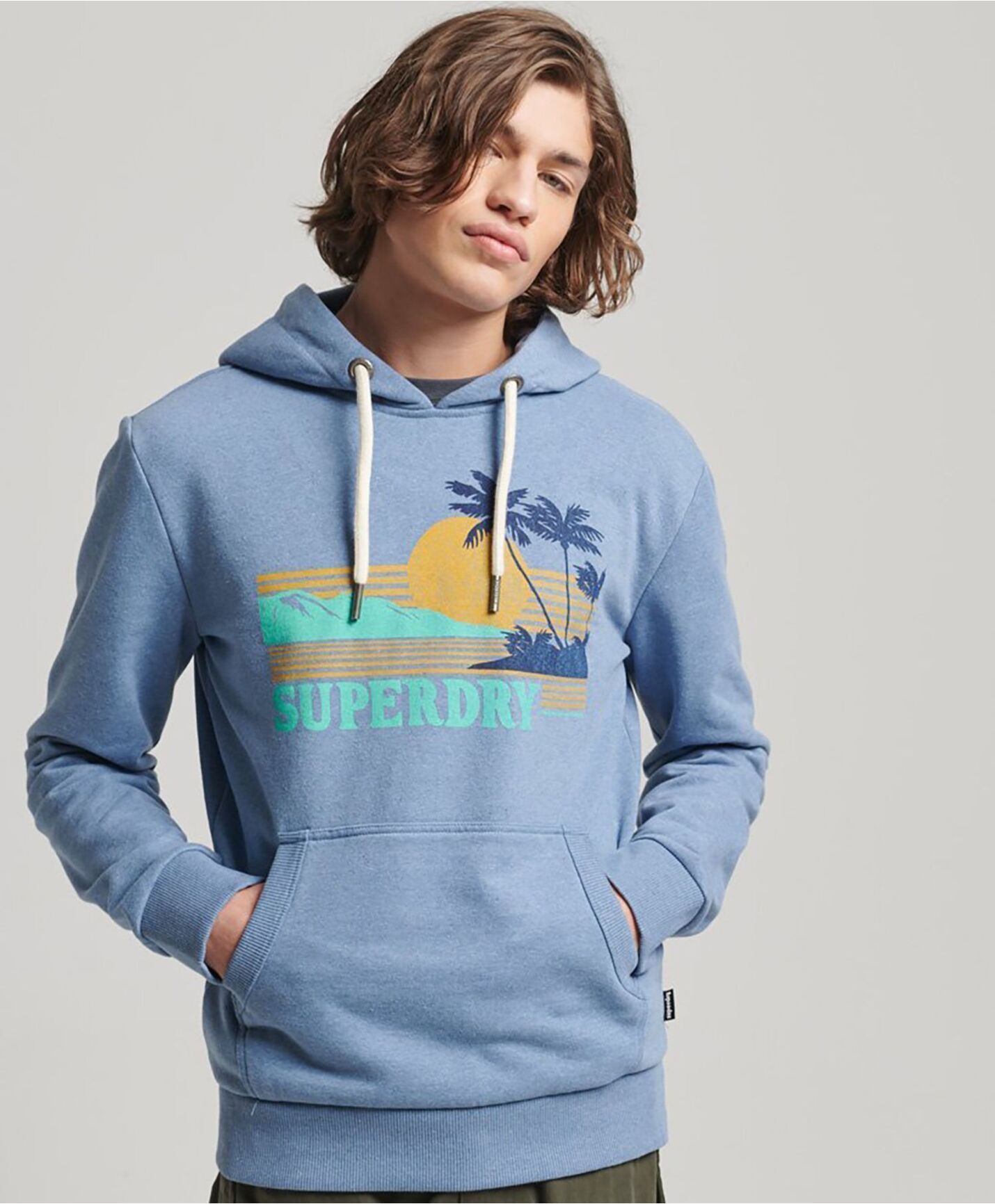 Klassisk Superdry hettegenser i herlig bomull med logo og print på bryst samt lomme i front. Deilig, myk kvalitet og behagelig passform.
